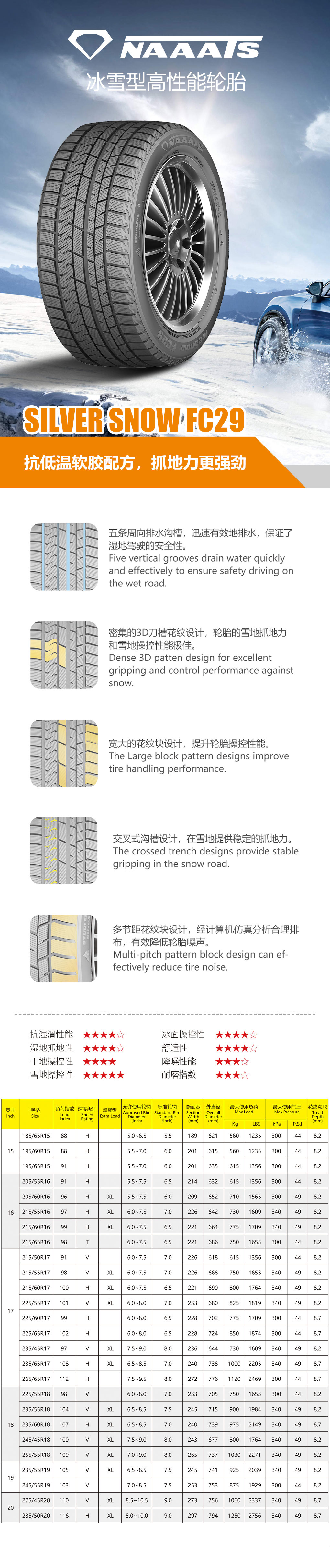 商品類型:NAAATS(金耐石) 產品描述:冬季駕控高端精品午夜AV。采用全胎麵軟膠設計,曆經多個酷寒冬季考驗,膠料依舊保持柔軟彈性。優化組合的3D全溝深溝槽,發揮持久冰雪抓地效果。 谘詢電話:0546-6893818
